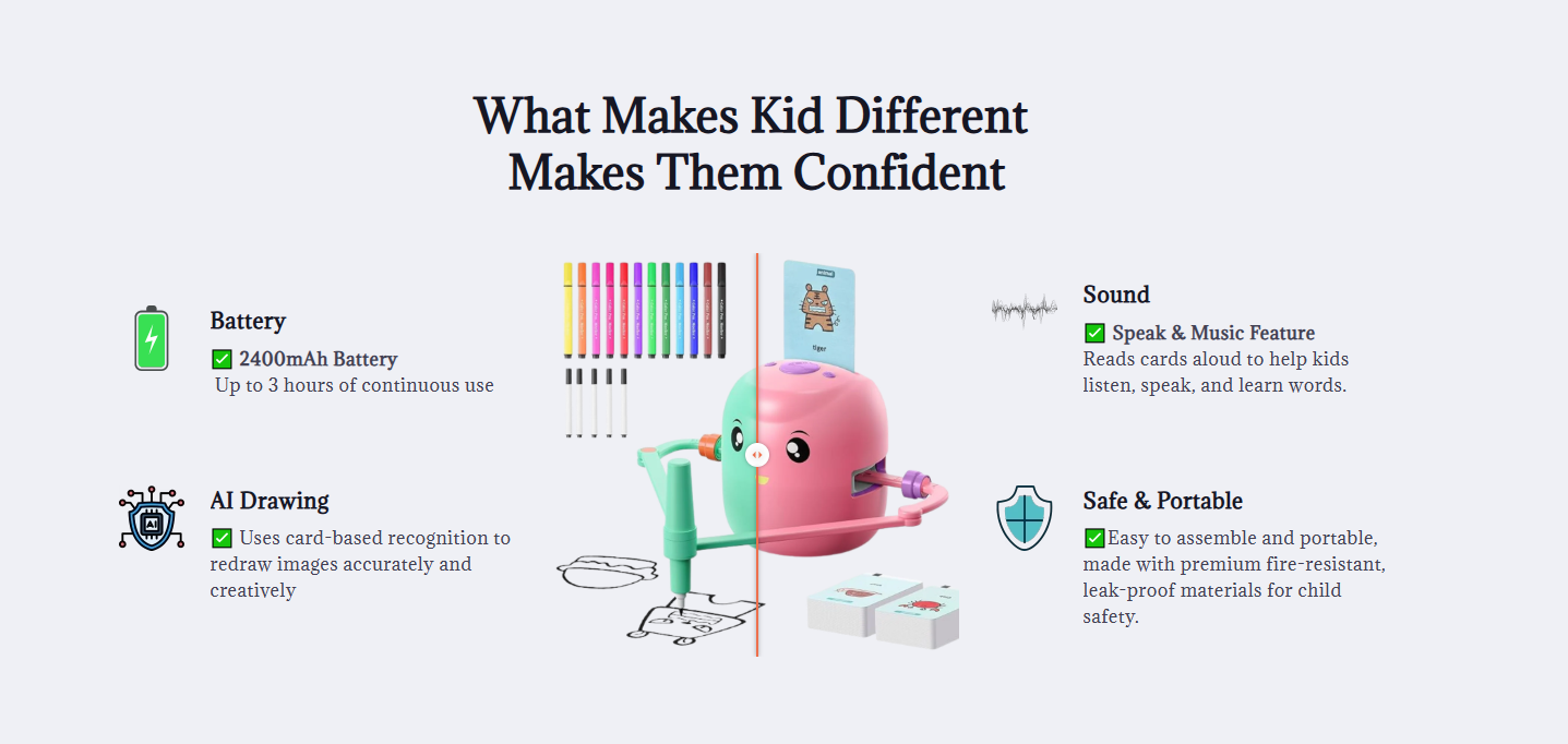 TOYBABI™ brings joy and learning to your child's world! Easy-to-use drawing cards make art creation effortless and fun. Precision technology teaches shapes, patterns, and creativity.